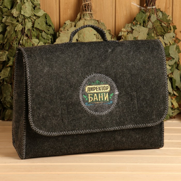 Набор банный "Мужской" портфель 5 предметов, серый, с вышивкой