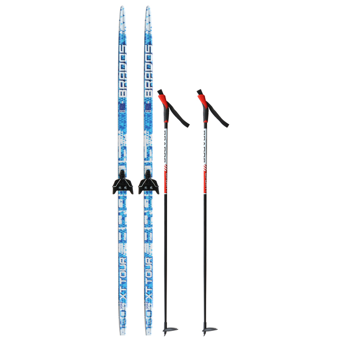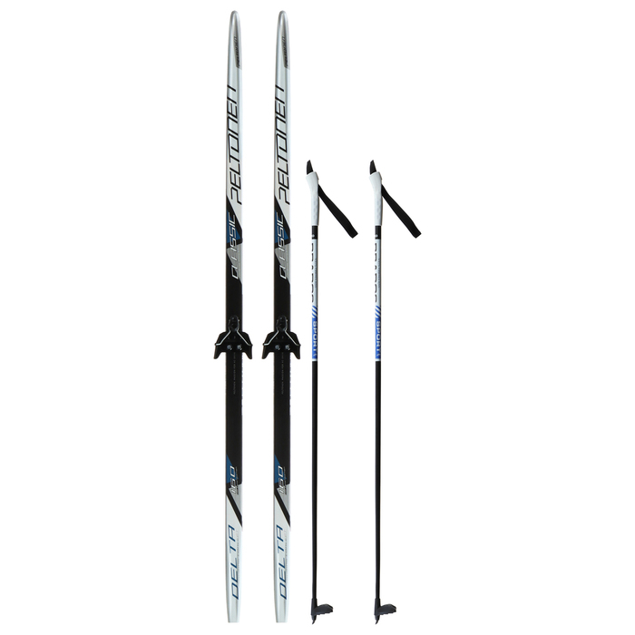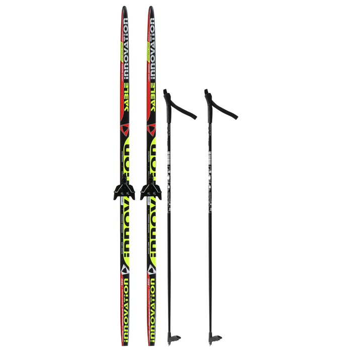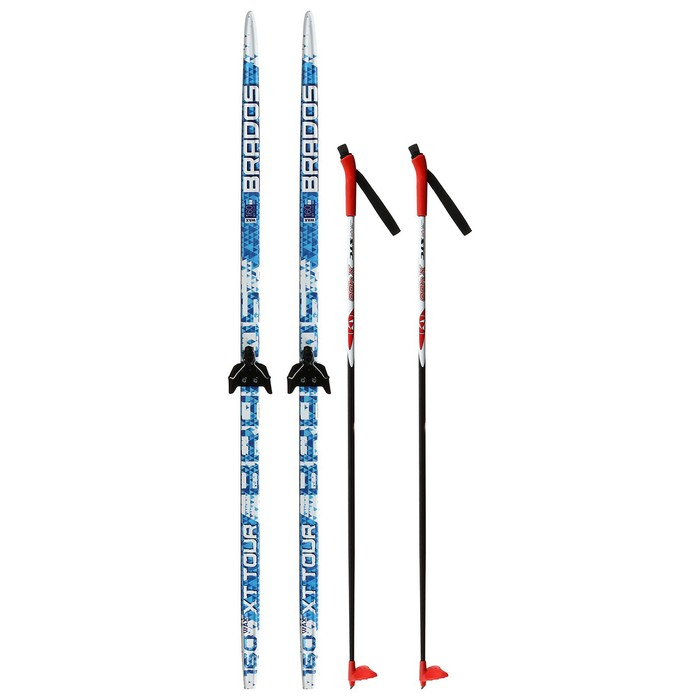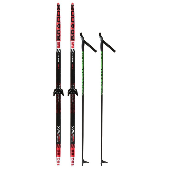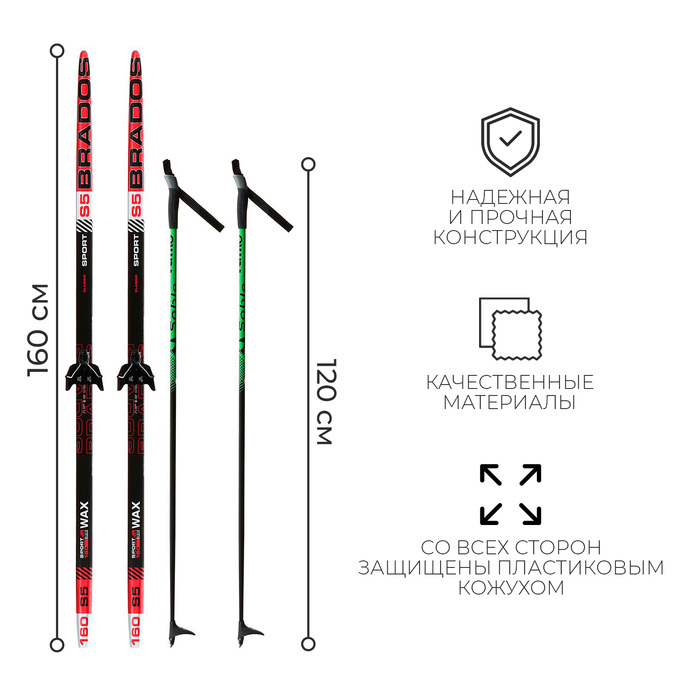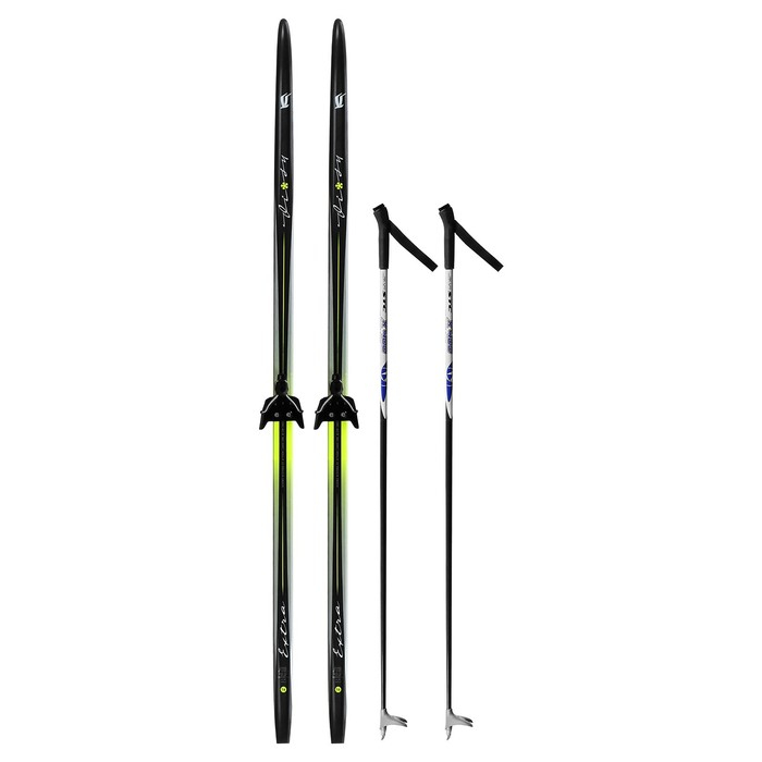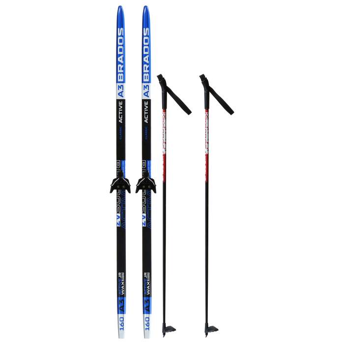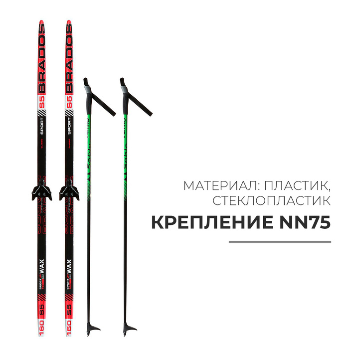 Комплект лыжный: пластиковые лыжи 160 см без насечек, стеклопластиковые палки 120 см, крепления NN75 мм, цвета МИКС