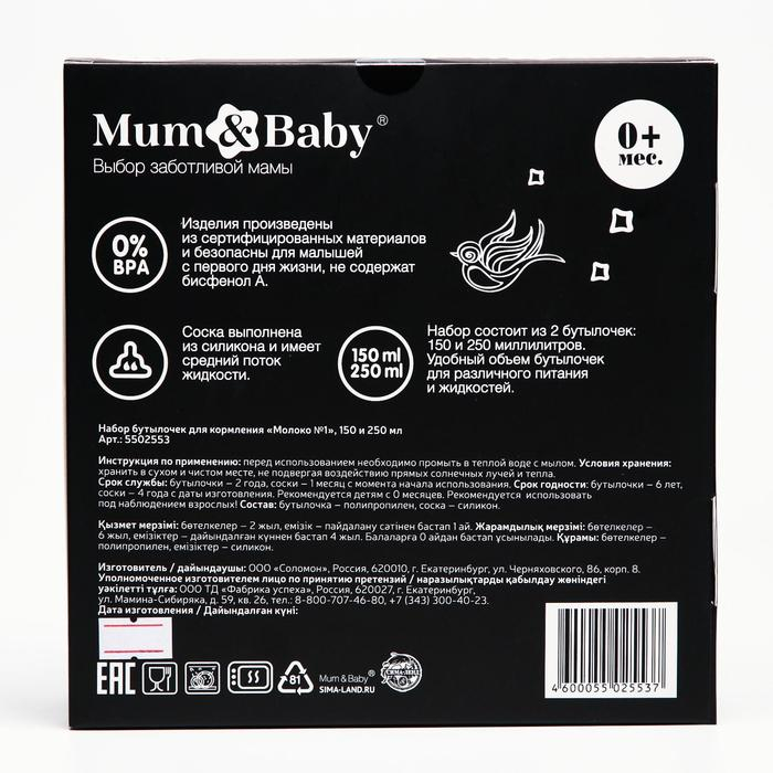 Набор бутылочек для кормления «Молоко №1» 150 и 250 мл