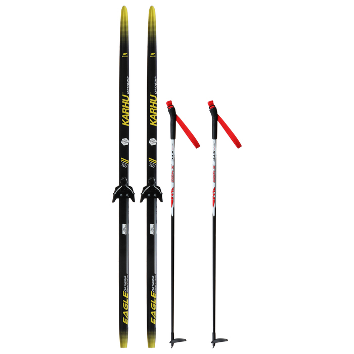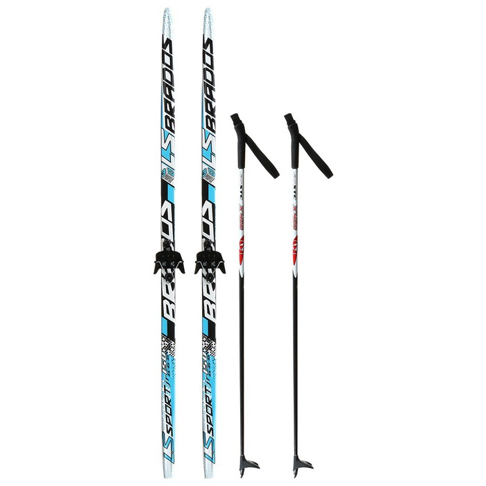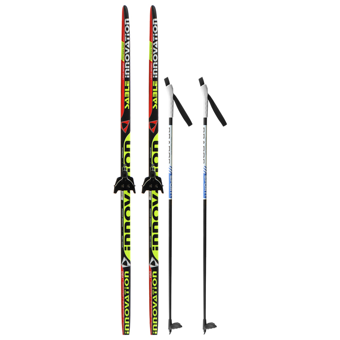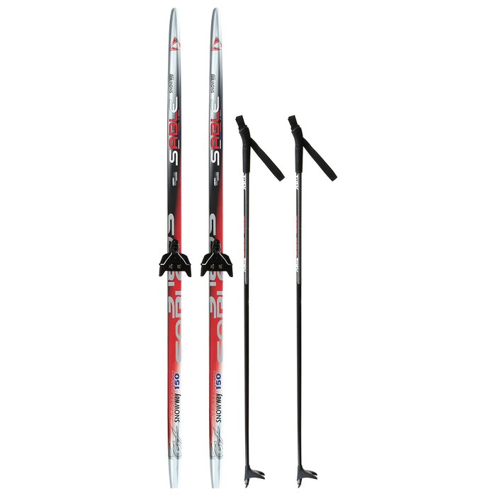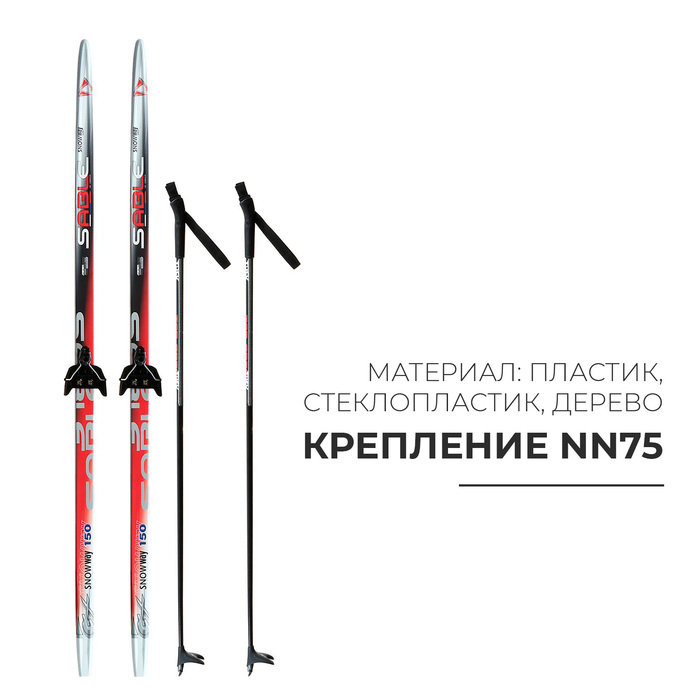 Комплект лыжный: пластиковые лыжи 150 см без насечек, стеклопластиковые палки 110 см, крепления NN75 мм, цвета МИКС