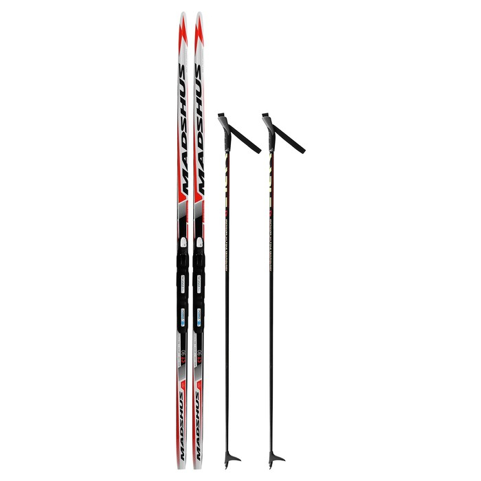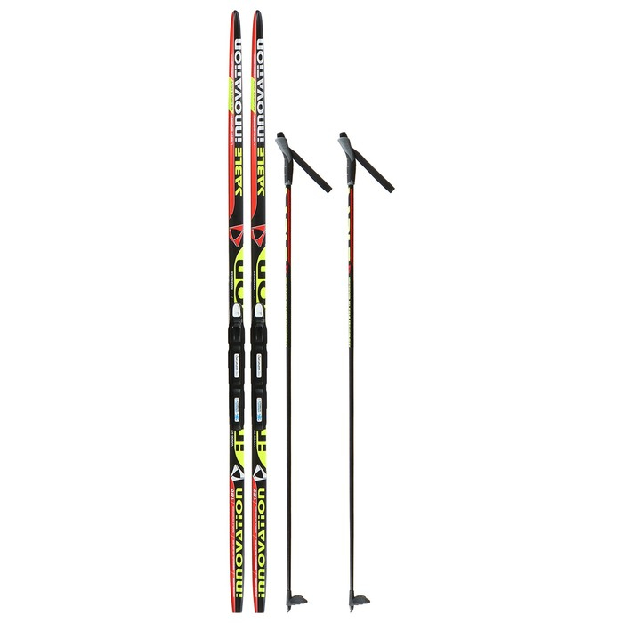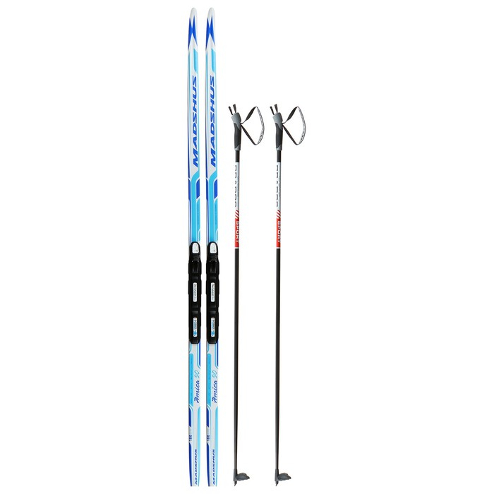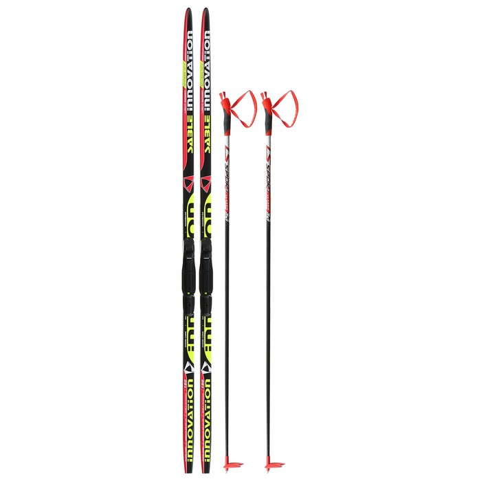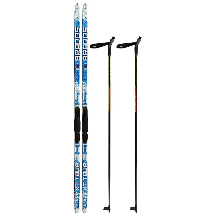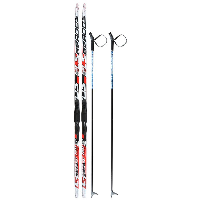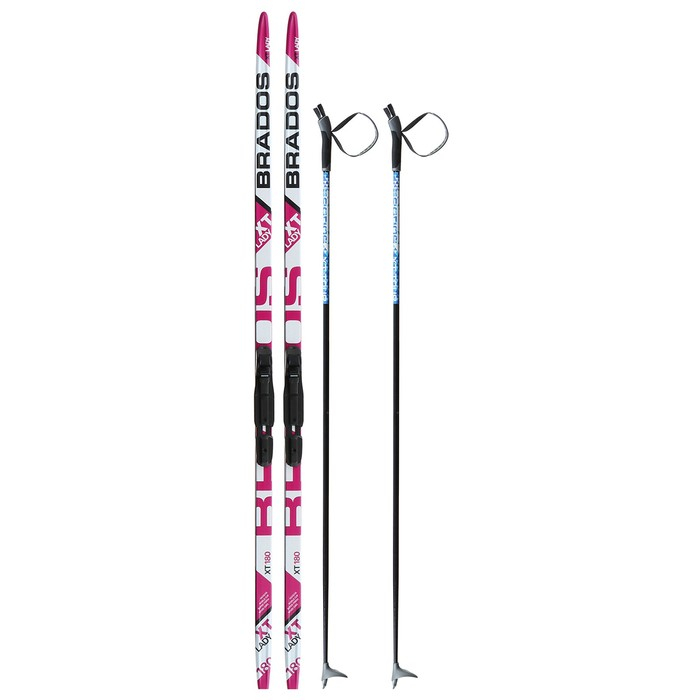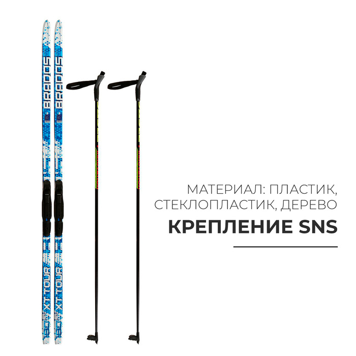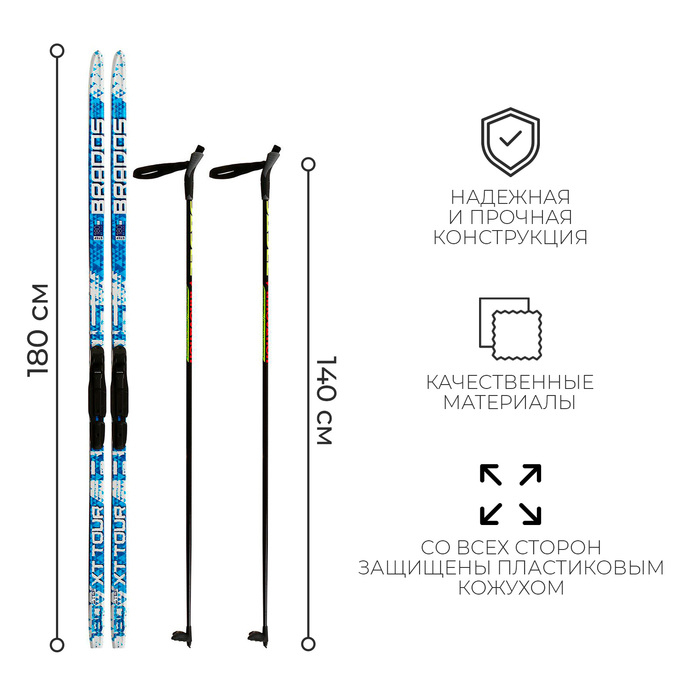 Комплект лыжный: пластиковые лыжи 180 см с насечкой, стеклопластиковые палки 140 см, крепления SNS, цвета МИКС