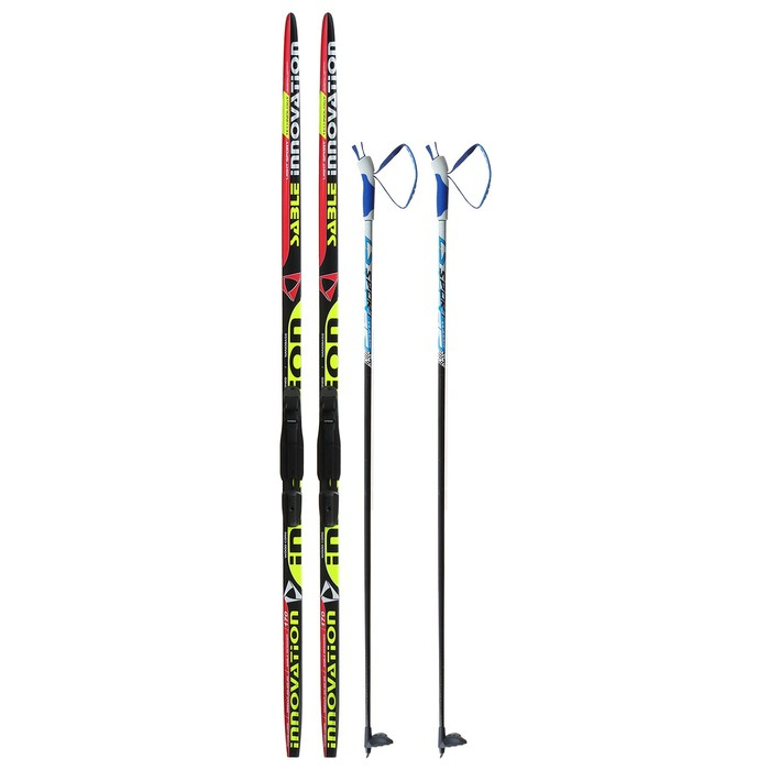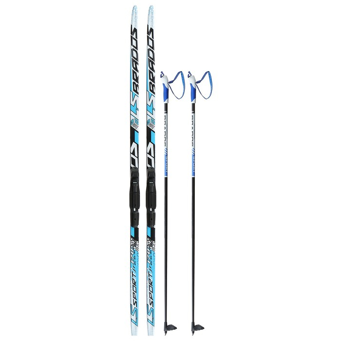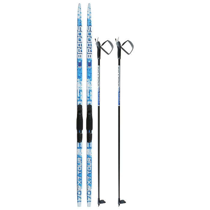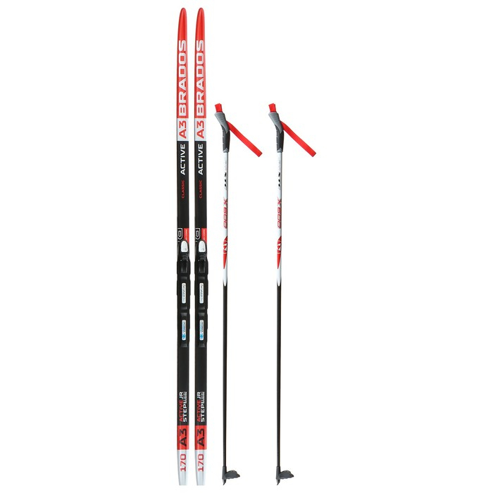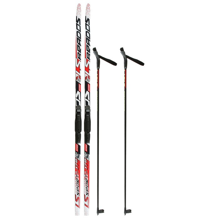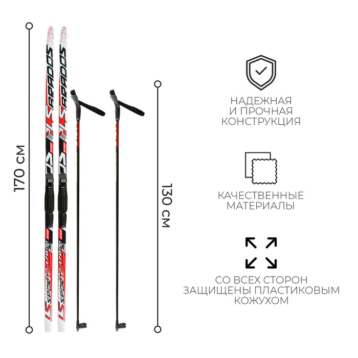 Комплект лыжный: пластиковые лыжи 170 см с насечкой, стеклопластиковые палки 130 см, крепления SNS, цвета МИКС