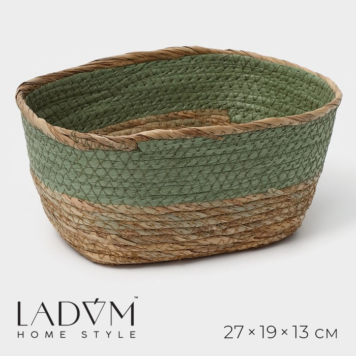 Корзина для хранения плетёная ручной работы LaDо́m «Лео», 25×18×12 см, цвет зелёный