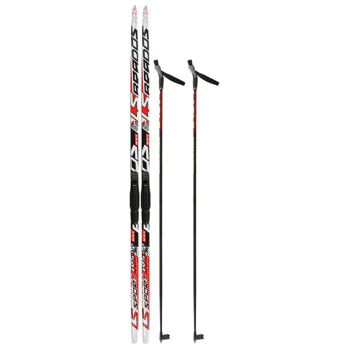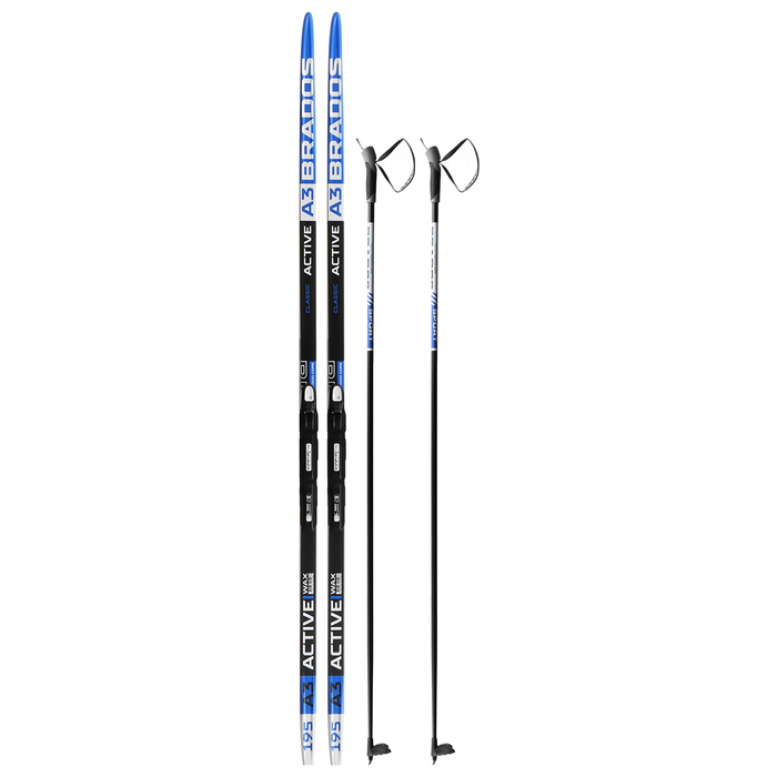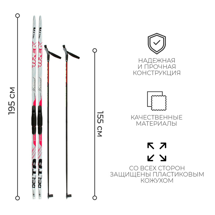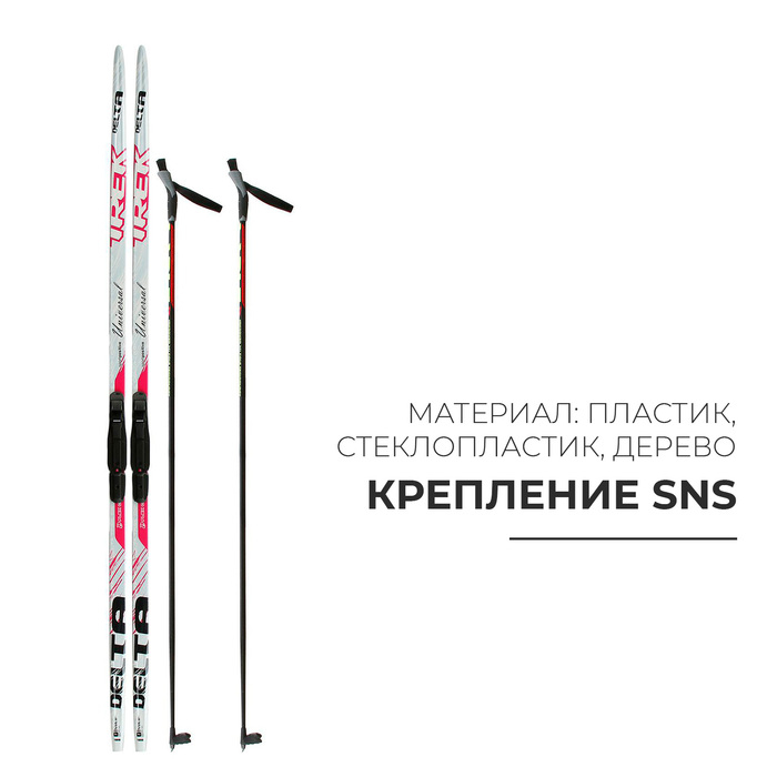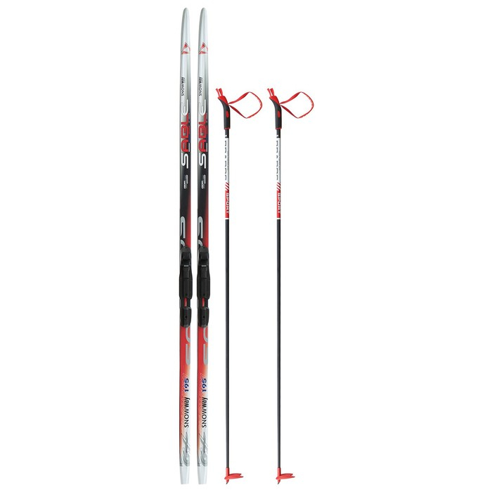 Комплект лыжный: пластиковые лыжи 195 см без насечек, стеклопластиковые палки 155 см, крепления SNS, цвета МИКС
