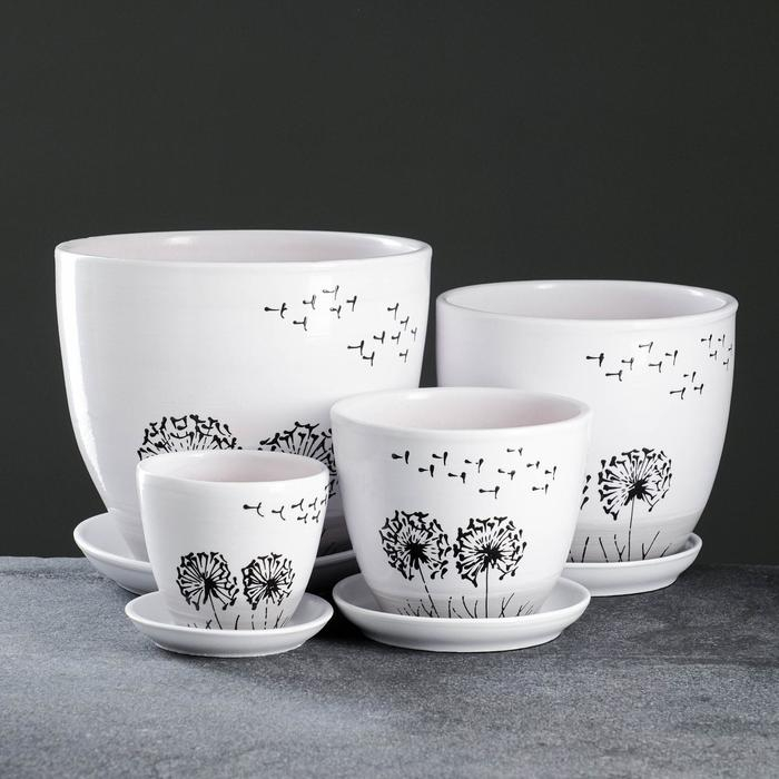 Набор горшков цветочных 4 шт. Одуванчик 0,4 / 1 / 2,5 / 5 л