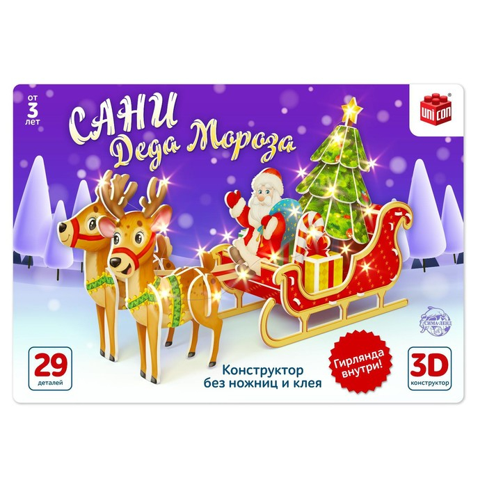 Конструктор 3D «Сани Деда Мороза», со светодиодной гирляндой, 29 деталей