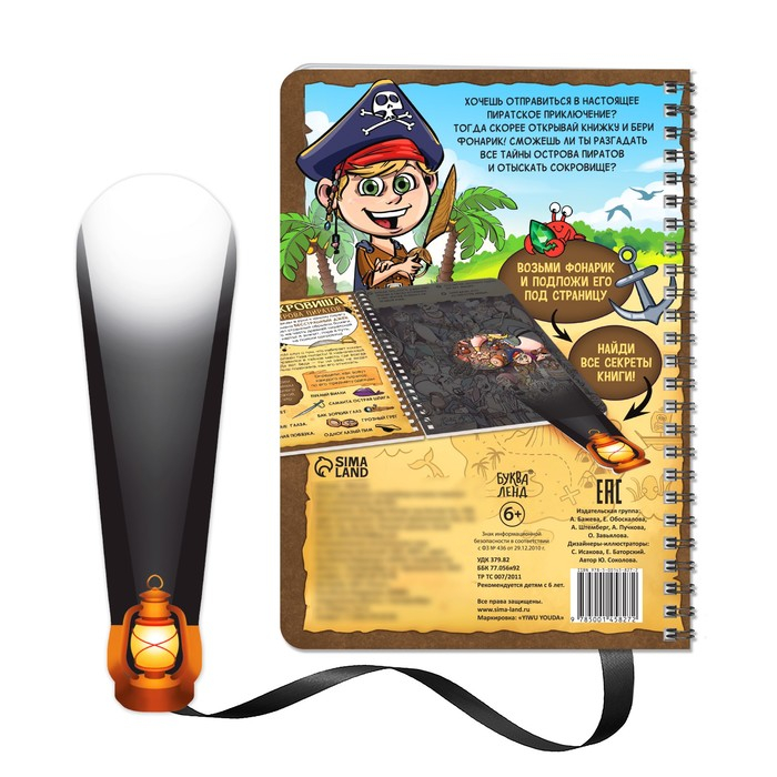 Книга-квест с фонариком «Сокровища острова пиратов», 30 стр.