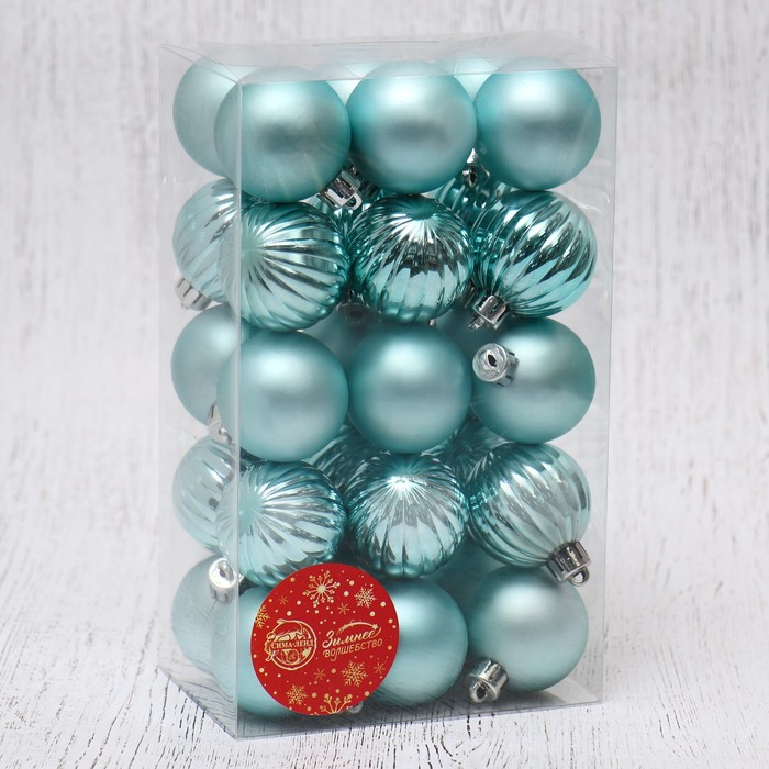 Набор шаров пластик d-4 см, 30 шт "Николь полоски" зелёный