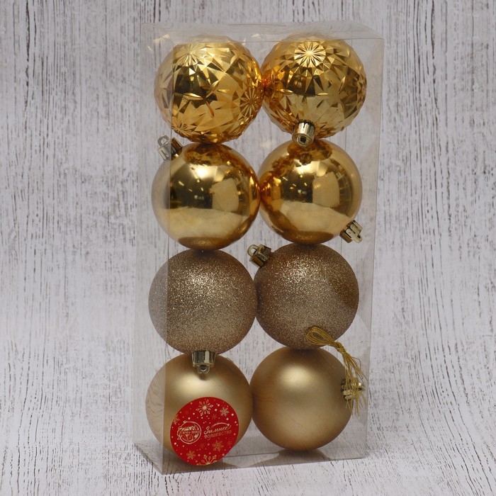 Набор шаров пластик d-7 см, 8 шт "Калейдоскоп ассорти" золото