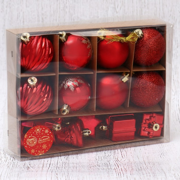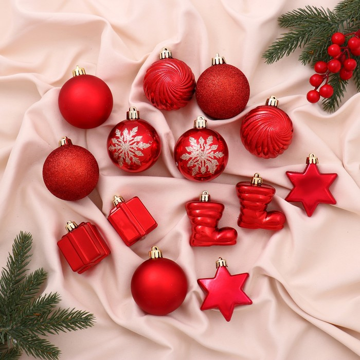 Набор украшений пластик 14 шт "Дейзи" (8 шаров d-6 см, 6 фигурок) красный
