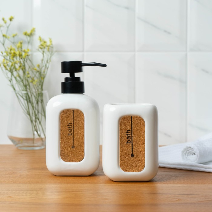Набор аксессуаров для ванной комнаты «Листва», 2 предмета (дозатор для мыла, стакан), цвет белый