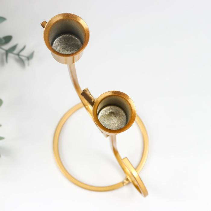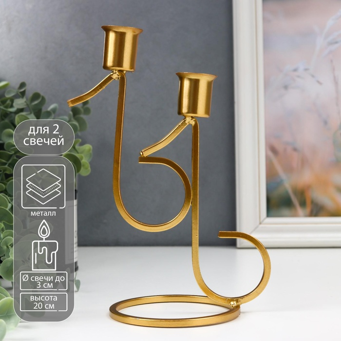 Подсвечник металл на 2 свечи "Ноты" золото 20х9х12.5 см