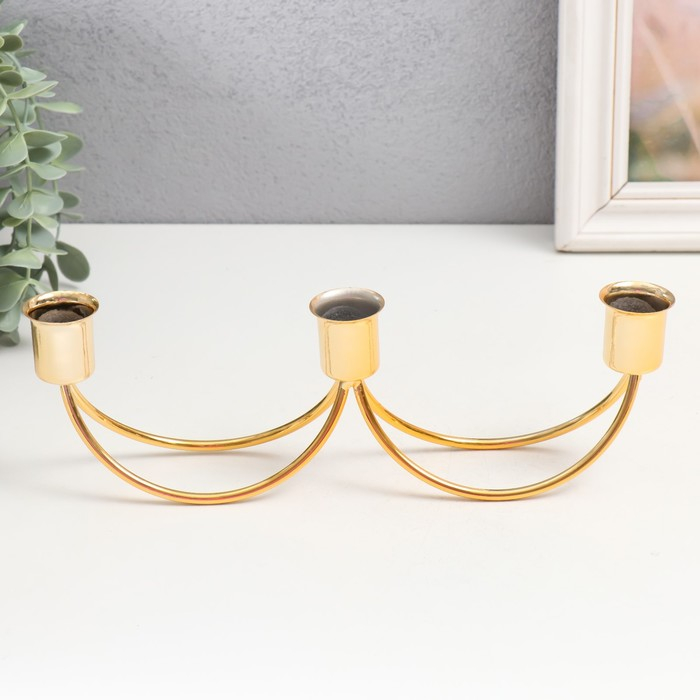Подсвечник металл на 3 свечи "Качели" золото 8х4х26 см