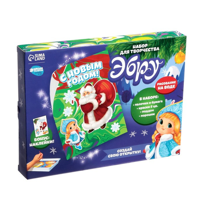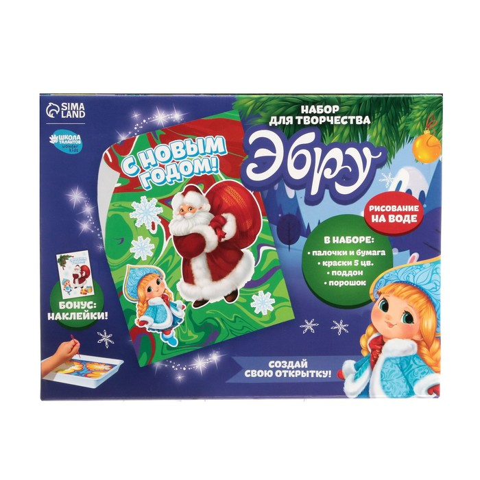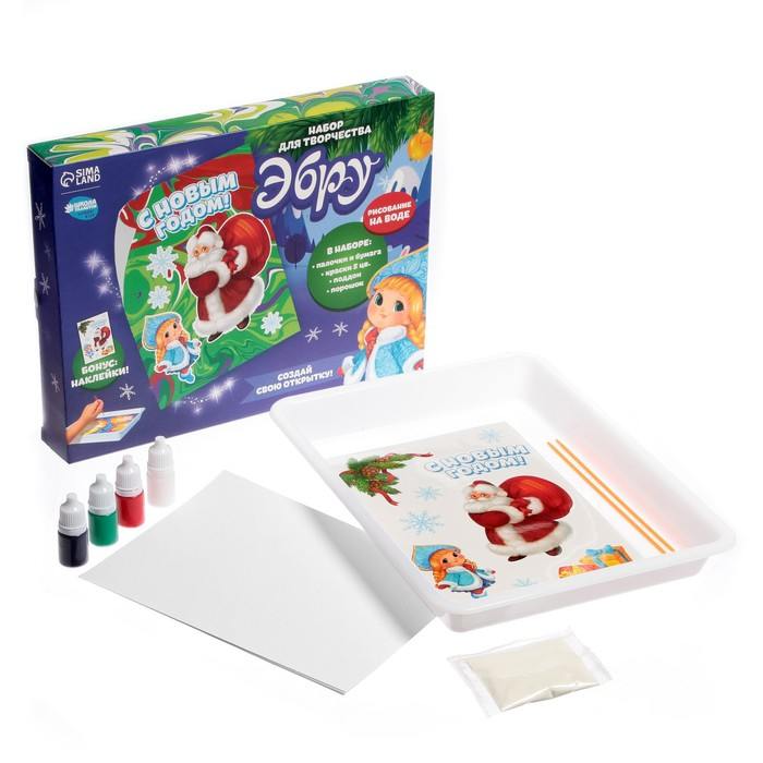 Набор для рисования эбру на новый год «Дед Мороз», новогодний набор для творчества