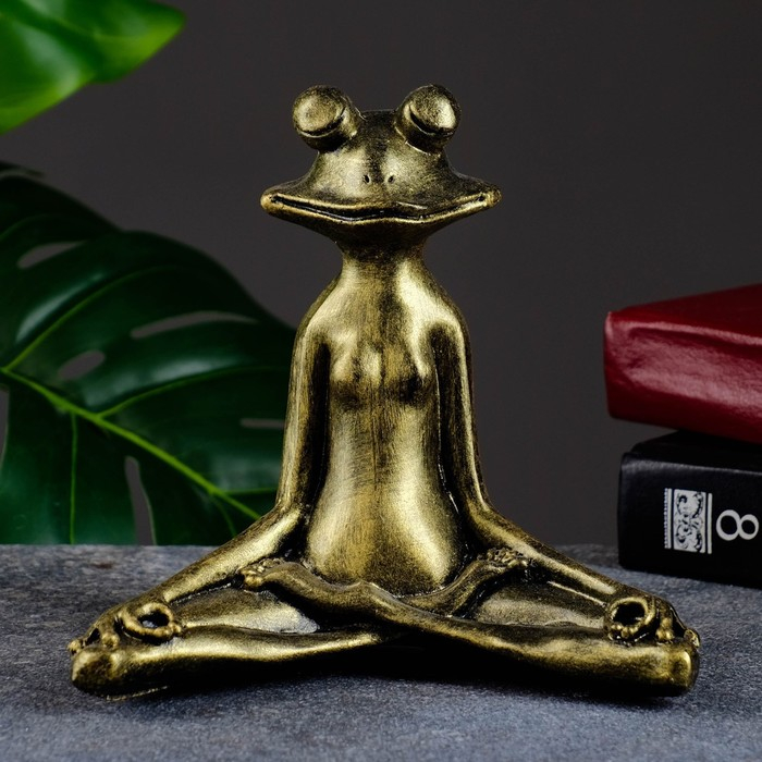 Фигура "Лягушка йог в позе лотоса" 16х16х6см, золото