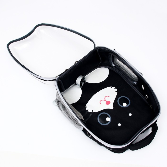Рюкзак для переноски кошек, прозрачный, 34 х 25 х 40 см, чёрный