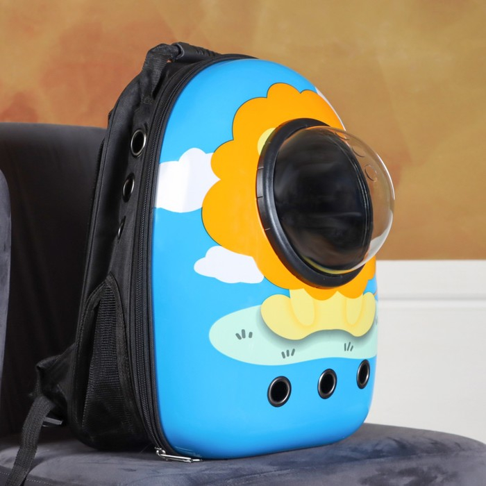 Рюкзак для переноски кошек и собак "Лев", с окном, 32 х 25 х 42 см, голубой