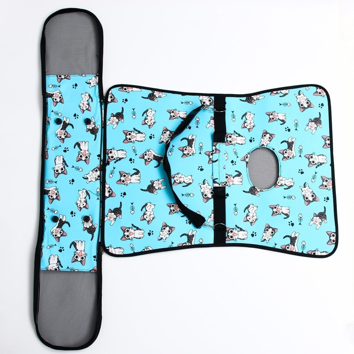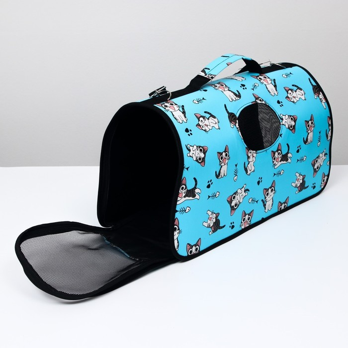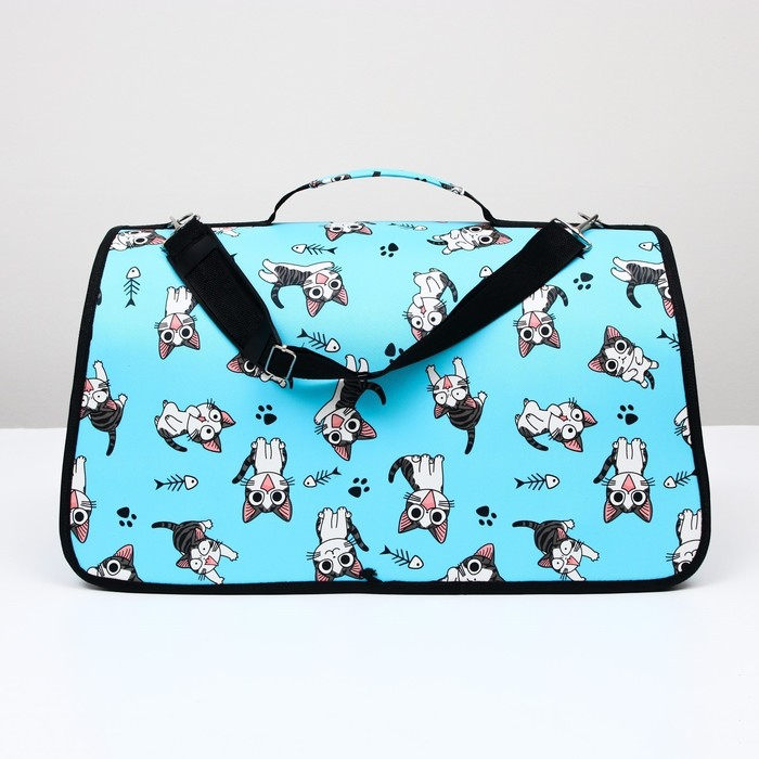 Сумка - переноска для животных "Играющие котики", голубая, размер L, 53 х 21 х 29 см