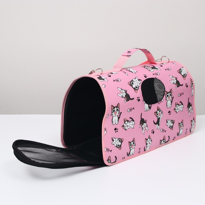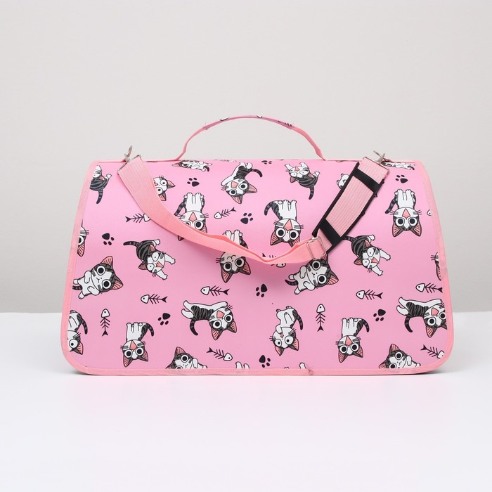 Сумка - переноска для животных "Играющие котики", розовая, размер L, 53 х 21 х 29 см