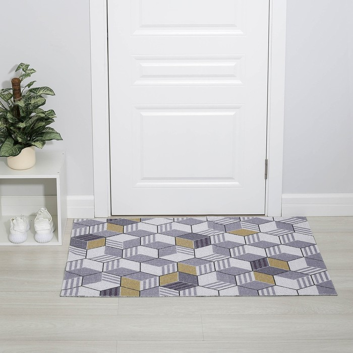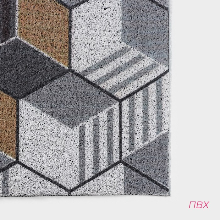 Коврик придверный грязезащитный Доляна «Мозаика», вырезной, 80×120 см, цвет серый, коричневый