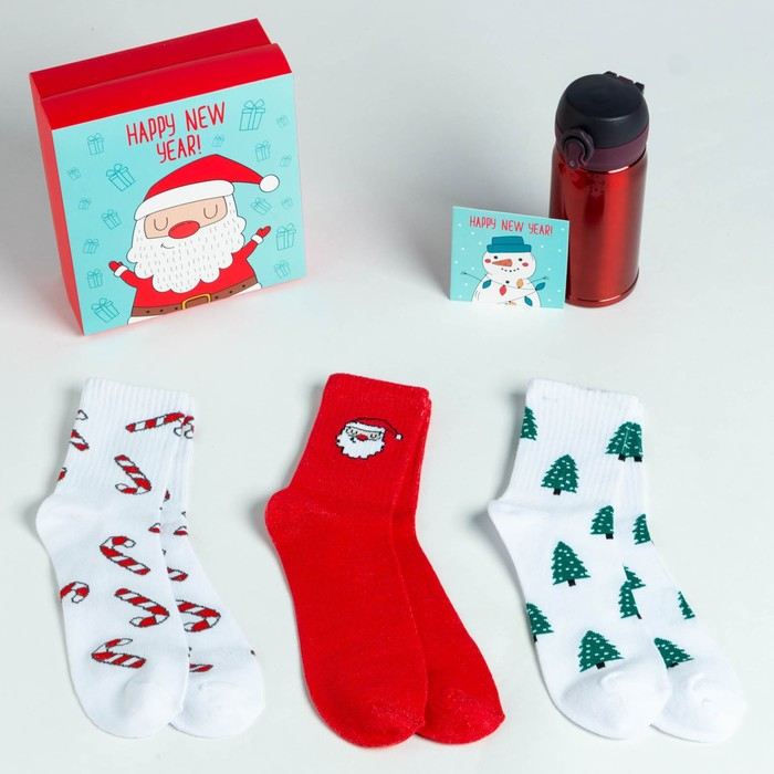 Новогодний подарочный набор термос и носки KAFTAN New Year, р-р 36-39