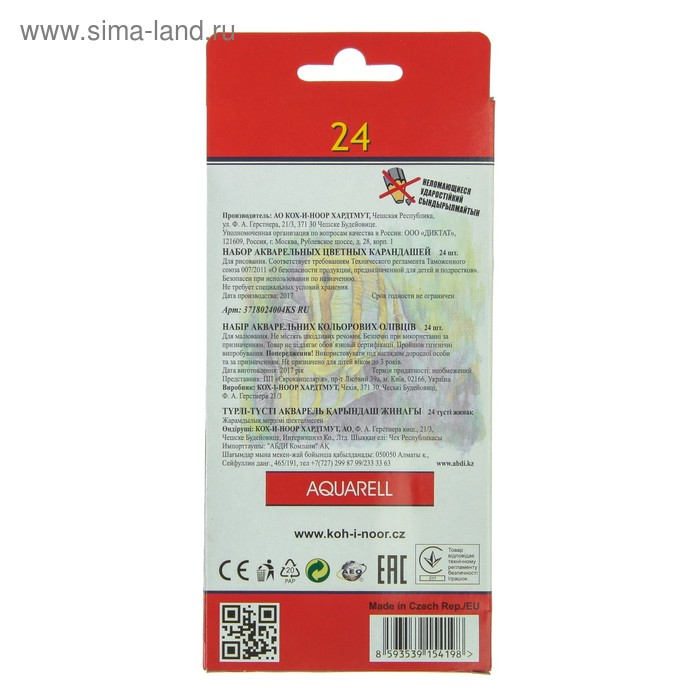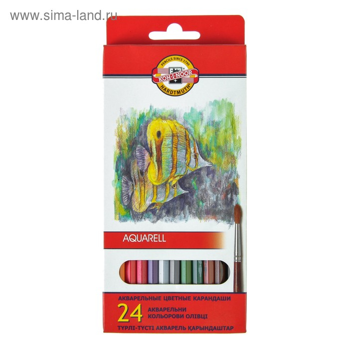 Карандаши акварельные 24 цвета 3.0 мм Koh-I-Noor "Рыбки" 3718, картонная коробка, европодвес, L=175 мм