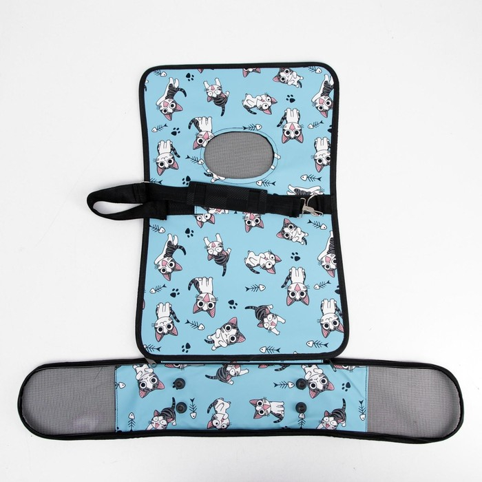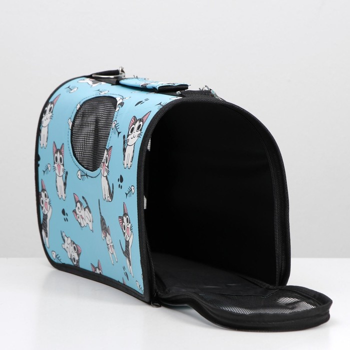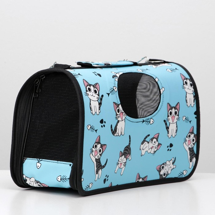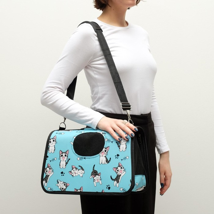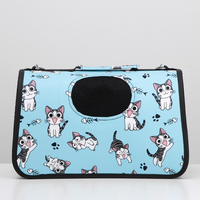 Сумка - переноска для животных "Играющие котики", голубая, размер M, 40 х 21 х 27 см