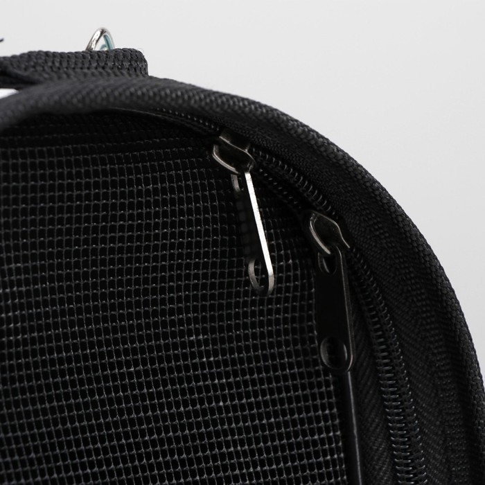 В дно переноски вшит плотный картон, который обеспечивает твердую основу и защищает животное от вибраций и ударов. Прозрачная сетка позволяет питомцу наблюдать за окружающим миром и получать достаточно свежего воздуха.