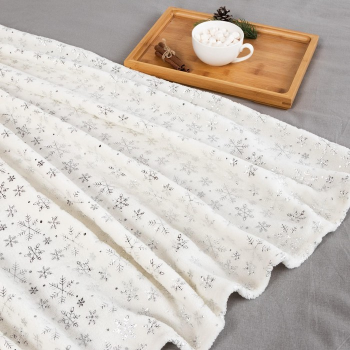 Плед Этель "Серебряные снежинки" 150*200 см,100% п/э, корал-флис 220 гр/м2