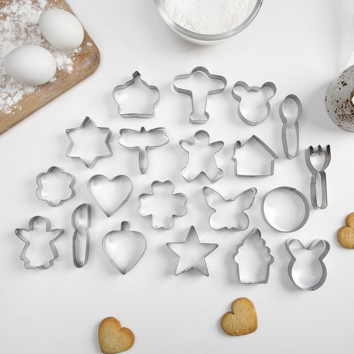 Набор форм для печенья «Лето», 20 шт, цвет серебристый