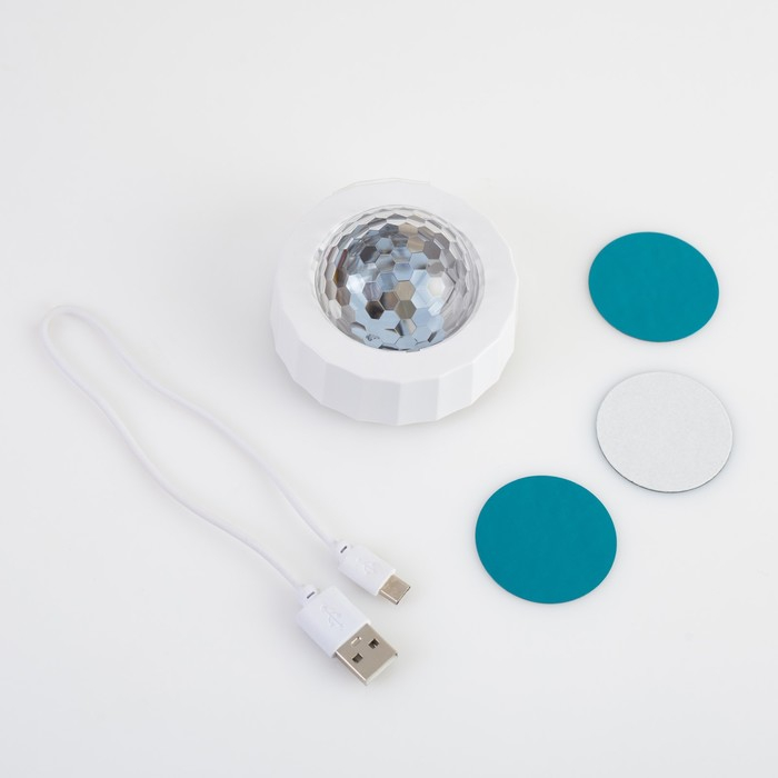 Световой прибор «Мини диско-шар» 8 см, реакция на звук, свечение RGB, 5 В