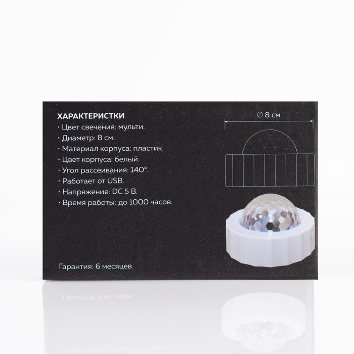 Световой прибор «Мини диско-шар» 8 см, свечение RGB, 5 В