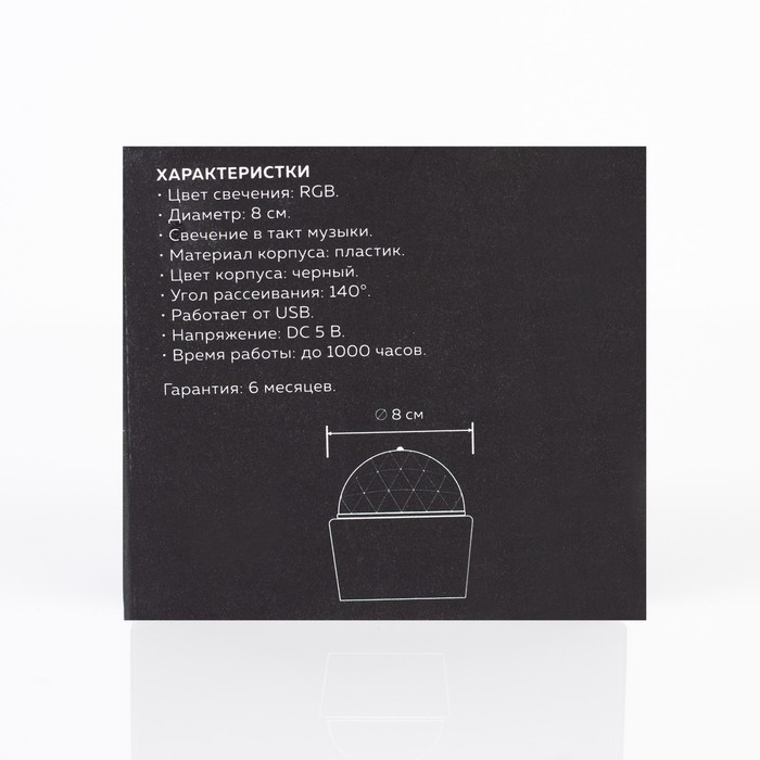 Световой прибор «Мини диско-шар» 8 см, реакция на звук, свечение RGB, 5 В