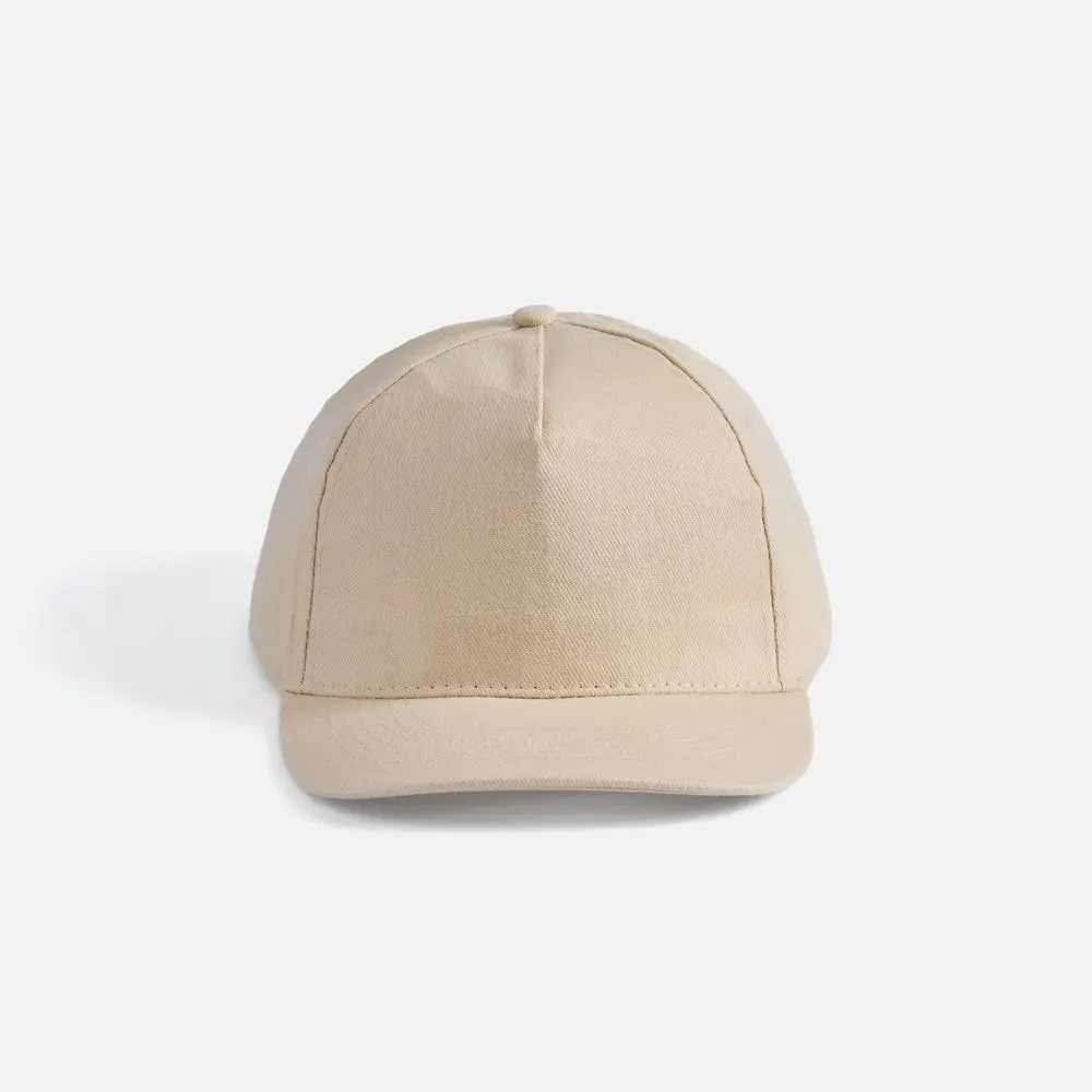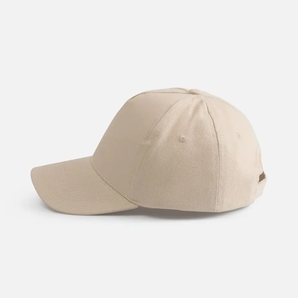 Модель бейсболки с 5-ю клиньями без лобового шва из плотного чесаного хлопка.