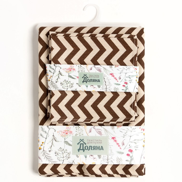 Набор Доляна скатерть 145х200см/салфетки 40х40см 4шт, кор, 100%пэ, рог 200 гр/м