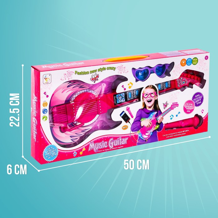 Игрушка музыкальная гитара «Играй и пой», с микрофоном, звуковые эффекты, цвет розовый