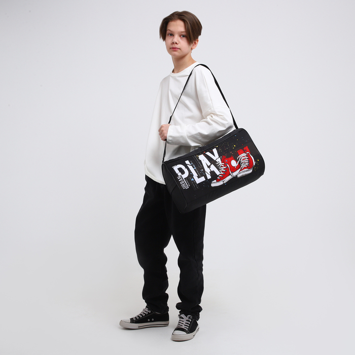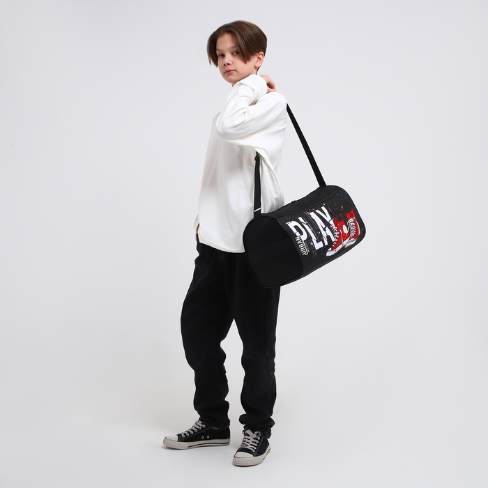 Сумка детская спортивная для мальчика на молнии, наружный карман, цвет чёрный