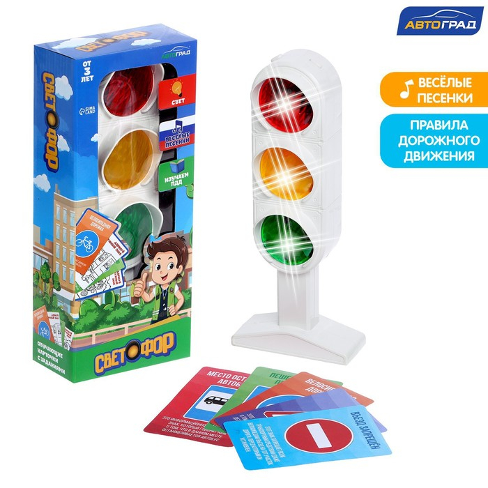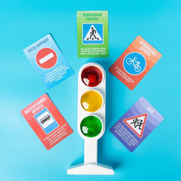 Светофор «Большая дорога», обучающие карточки, русский чип, свет, звук