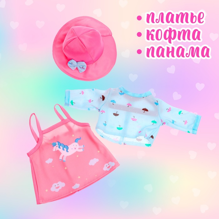 Одежда для пупса «Единорог» платье, кофта, панама