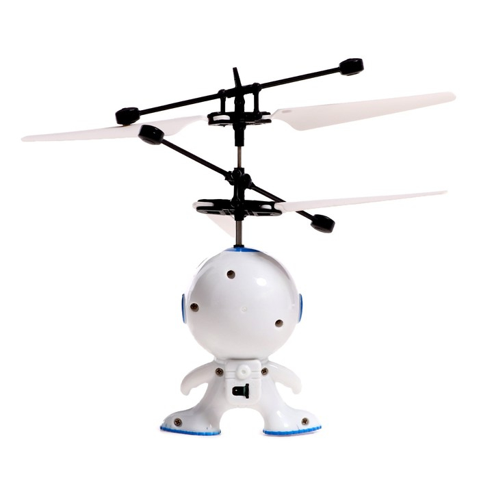 Летающая игрушка «Космобот с бластером» отправится с малышом в невероятное космическое приключение по межгалактическому пространству! Игрушка удивит любого ребёнка благодаря двум интересным способам управления: с помощью рук и бластера. Игрушка взлетает от соприкосновения с твёрдой поверхностью. Внутри неё установлен сенсор, он срабатывает при касании игрушки руки или пола.