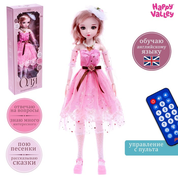 Кукла интерактивная шарнирная «Оля» в платье, с пультом