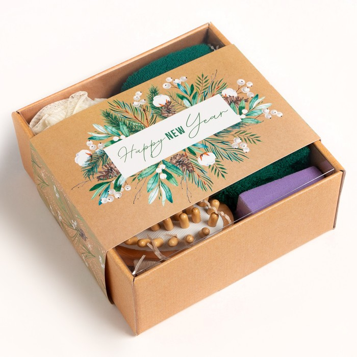 Новогодний подарочный набор Этель "Happy new year", полотенце 30х60 см и аксессуары