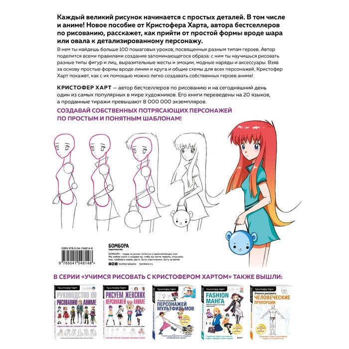 Книга Кристофера Харта, автора мировых бестселлеров по рисованию, научит каждого рисовать аниме по простым шаблонам. Начав с таких базовых форм, как линия и круг, к концу книги ты начнешь создавать собственных персонажей в популярном жанре. Опираясь на простые шаблоны и понятные объяснения, автор покажет, как рисовать разные человеческие фигуры и лица, делать креативные прически и подбирать яркие наряды. Вместе с этой книгой ты познакомишься с удивительным жанром аниме и начнешь создавать своих первых героев.