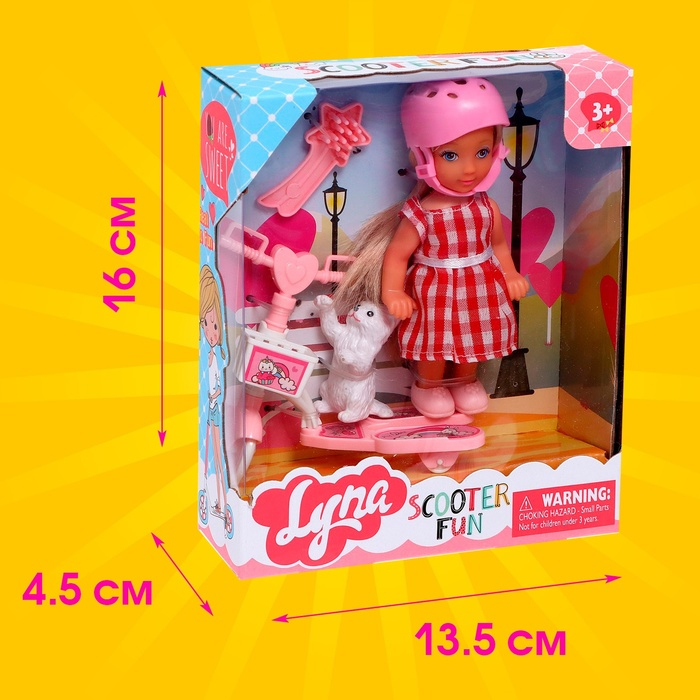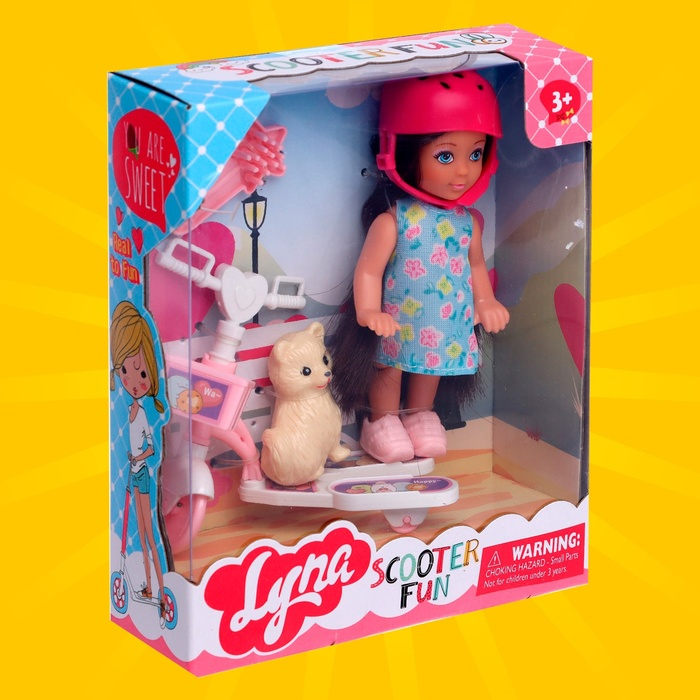 Кукла малышка Lyna на прогулке с самокатом, питомцем и аксессуарами, МИКС