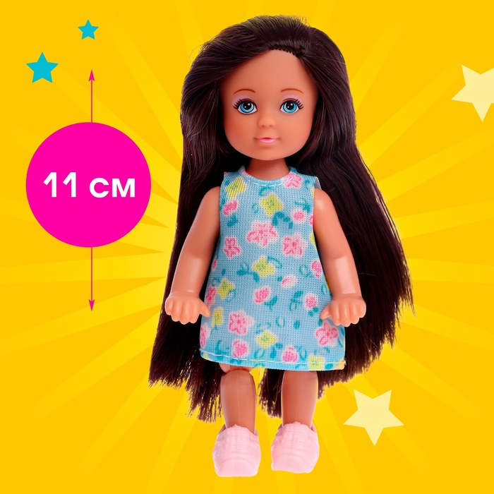 Высота куклы: 11 см. В комплекте есть велосипед, шлем и фигурка кошечки. С ними сюжетов для весёлой игры будет больше.