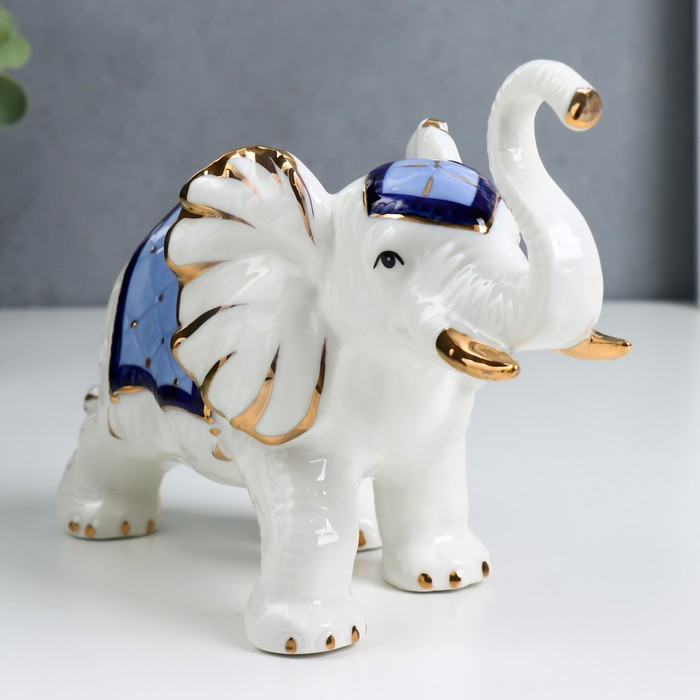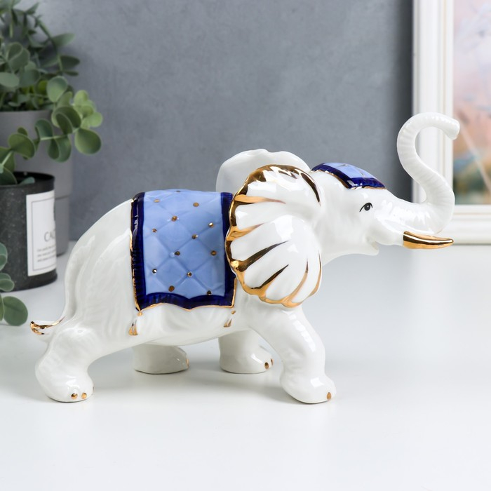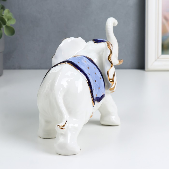 Сувенир керамика "Белый слон с попоной с кисточками" синий с золотом 21х14х8,5 см