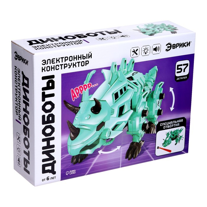 Электронный конструктор «Динаботы: Трицератопс», световые и звуковые эффекты, 57 деталей