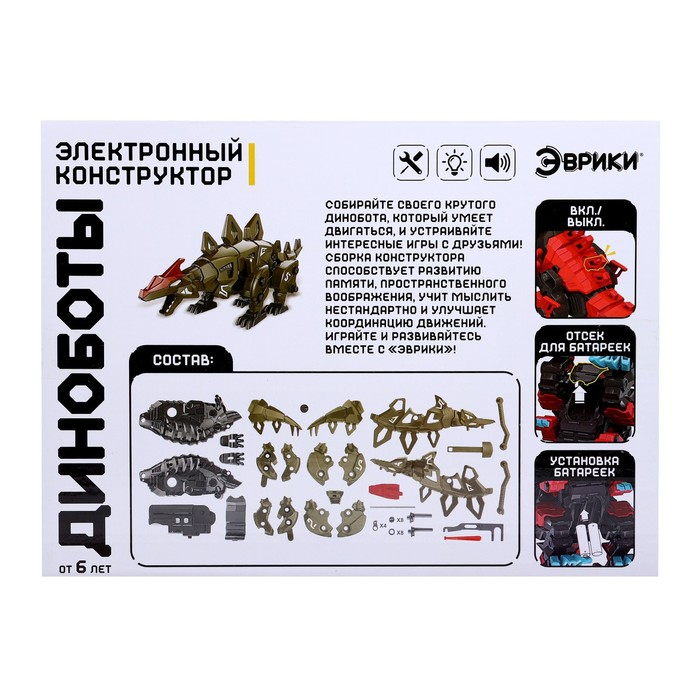 С электронным конструктором ребёнок соберёт могучего и опасного динозавра и с удовольствием поиграет с ним. Динобот умеет ходить и издавать звуки.