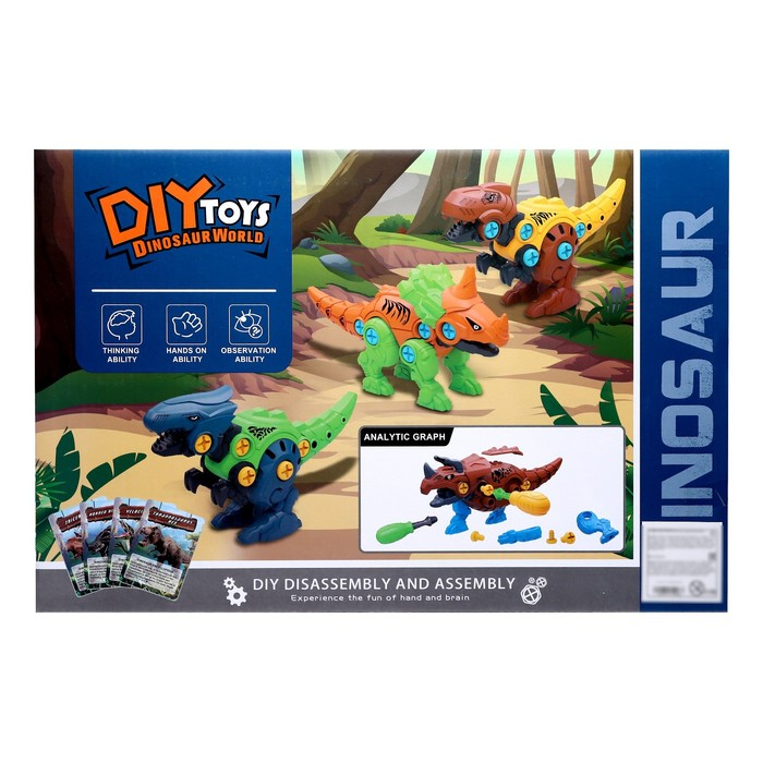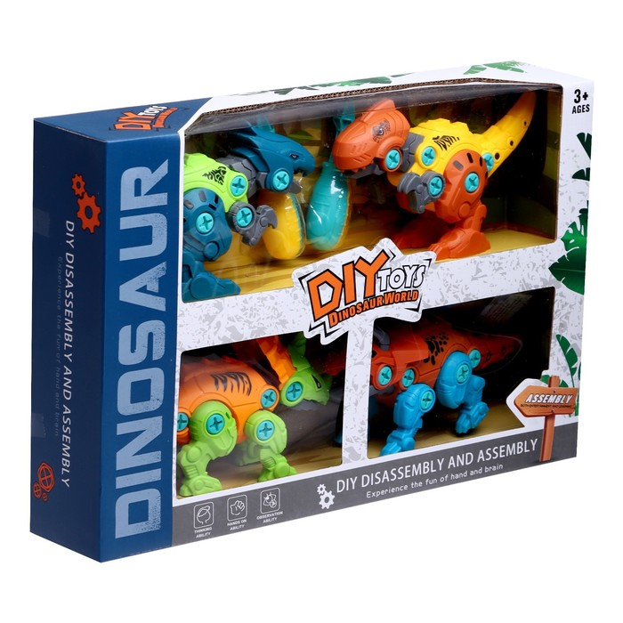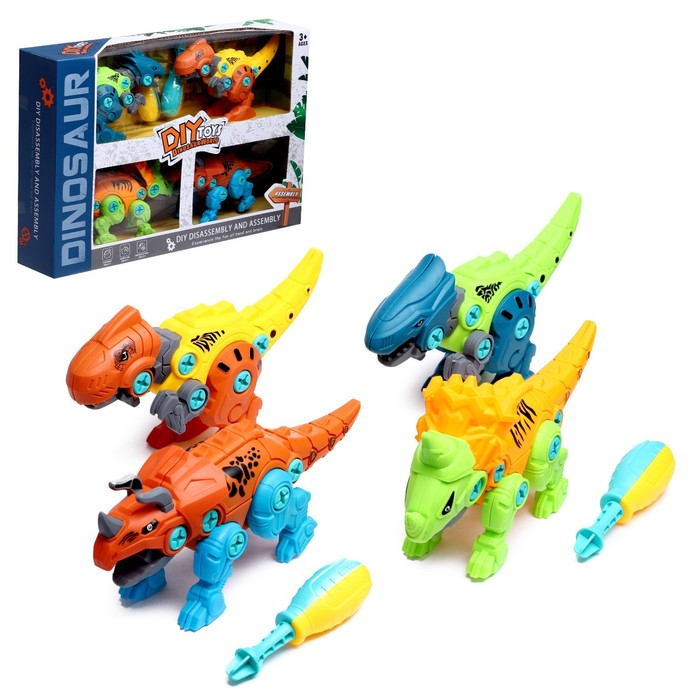 Конструктор винтовой «Мир динозавров», набор 4 штуки, 2 отвёртки 4 карточки, 100 деталей