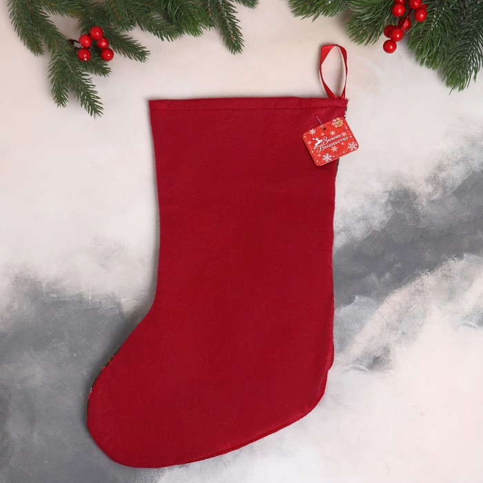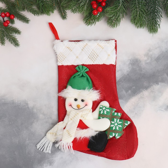Мягкая подвеска "Носок - Снеговик с ёлочкой" 20х33 см, бело-красный